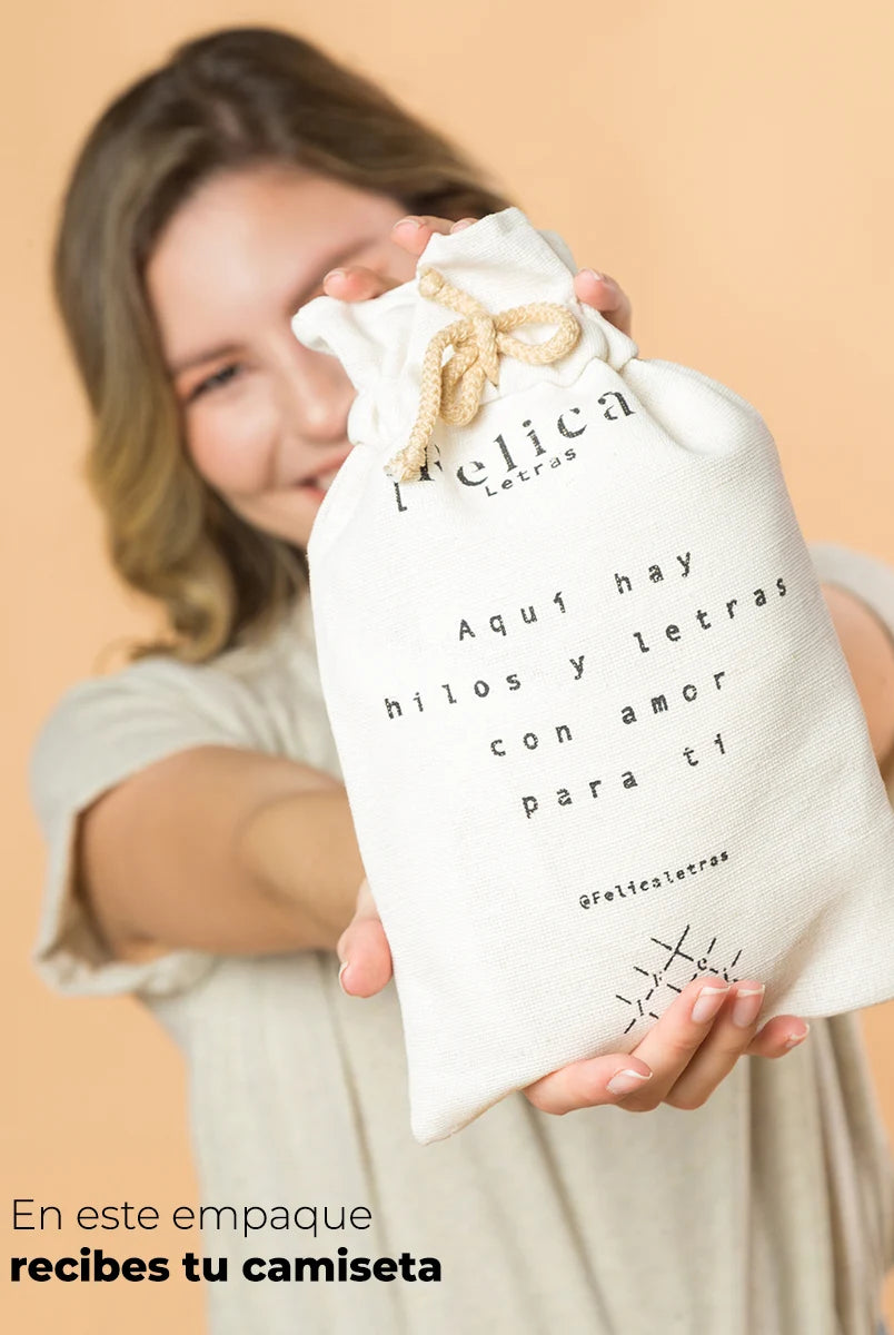 La prenda está empacada en una tulita hecha en tela virgen con una dedicatoria: “Aquí hay hilos y letras con amor para ti”. La puedes reutilizar las veces que quieras y así, de esta manera no tendrás que tirar a la basura nada.