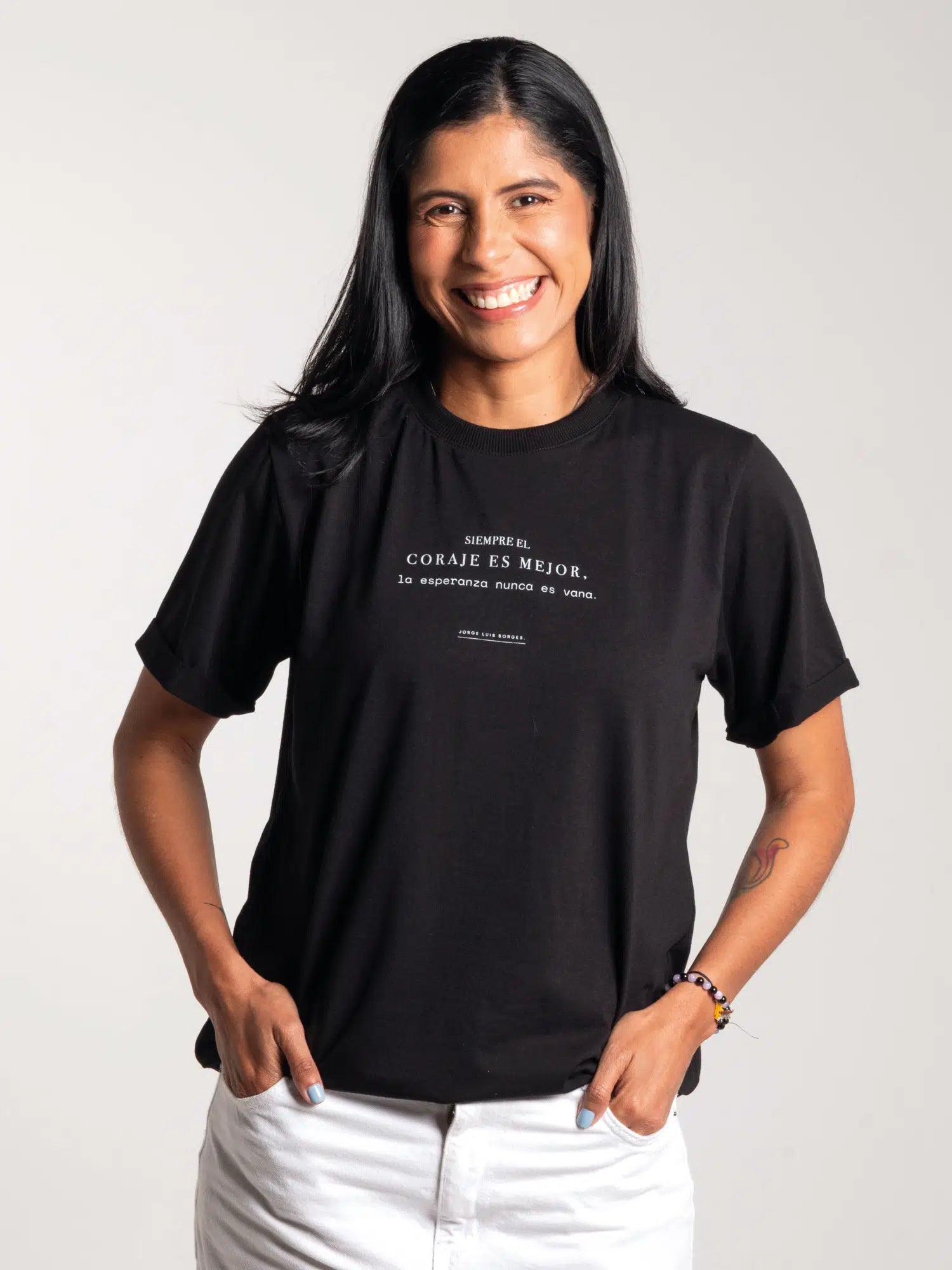 “Entre las cosas hay una de la que no se arrepiente nadie en la tierra. Esa cosa es haber sido valiente” Una camiseta que invita al coraje.
